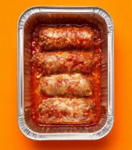 Peso 400g – Bife à rolê, macio e temperado e enrolado entorno de palitos de cenoura, cozido em molho.