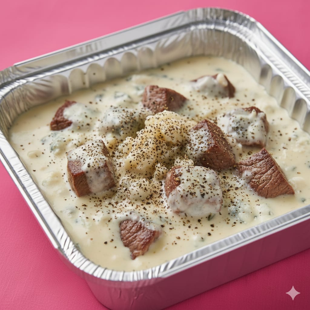 Peso 400g – Um molho cremoso e intenso, feito com iscas de filé mignon, gorgonzola, creme de leite, alho e um toque de vinho branco. O resultado é um perfume de carne assada misturado ao sabor picante e levemente amanteigado do queijo azul, que ganha ainda mais brilho com um fio de azeite extra‑virgem.
